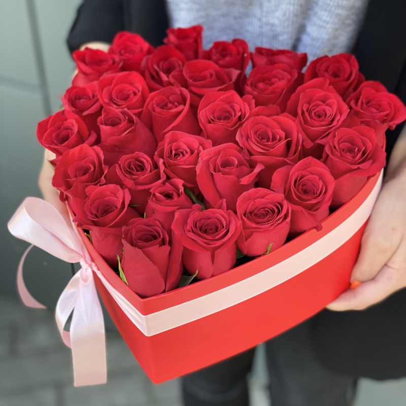 Коробка сердце с красными розами Страсть